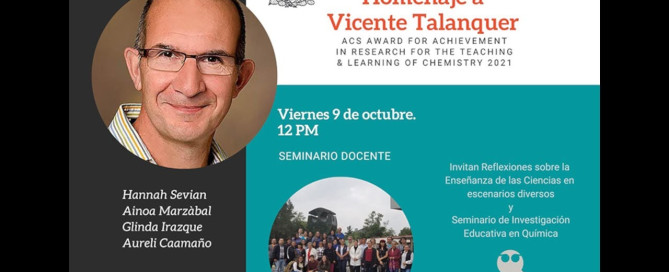 El profesor Vicente Talanquer de la Universidad de Arizona, ha sido reconocido por la Sociedad Americana de Química (ASC) con el premio "Award for Achievement in Research for the Teaching & Learning of Chemistry 2021", que es un reconocimiento a su trayectoria como investigador y divulgador en la enseñanza y aprendizaje de la disciplina. El